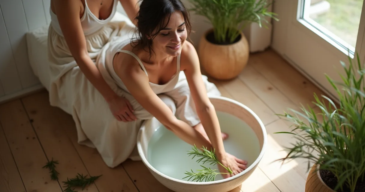 - Escalda-Pés Relaxante Profundo: Troque parte do alecrim por flores de lavanda e camomila. O aroma dessas flores é um convite direto ao sono e à calma.